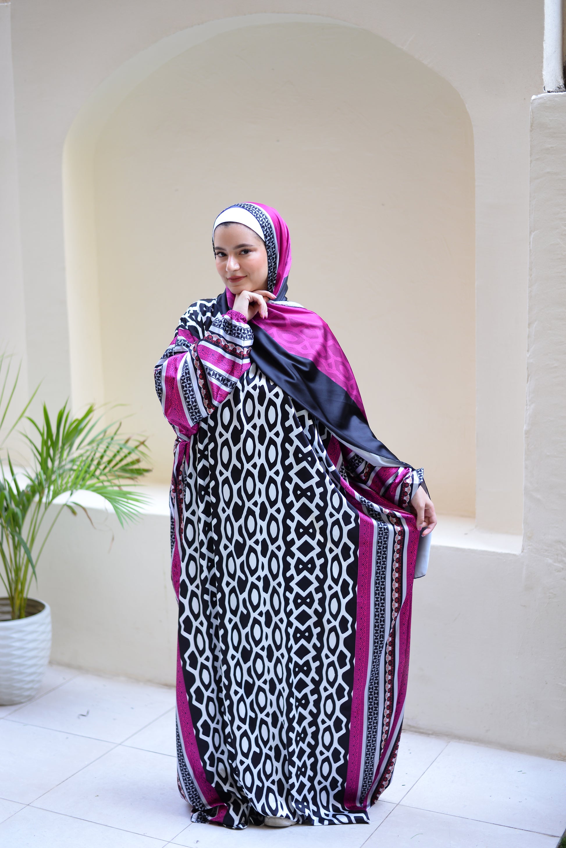 High quality imported satin material. The scarf is attached with the isdal. Sizes are one size and can be worn up to 110 kg.