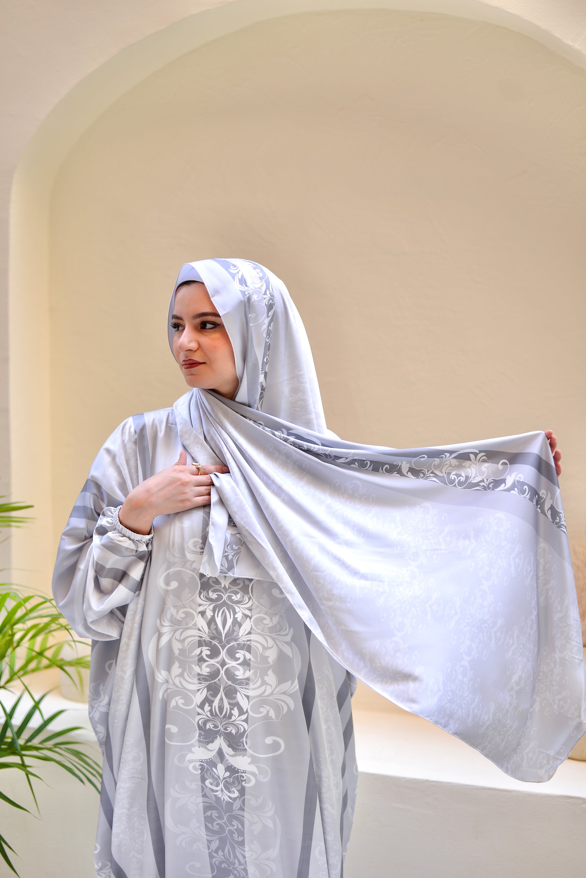 High quality imported satin material. The scarf is attached with the isdal. Sizes are one size and can be worn up to 110 kg.