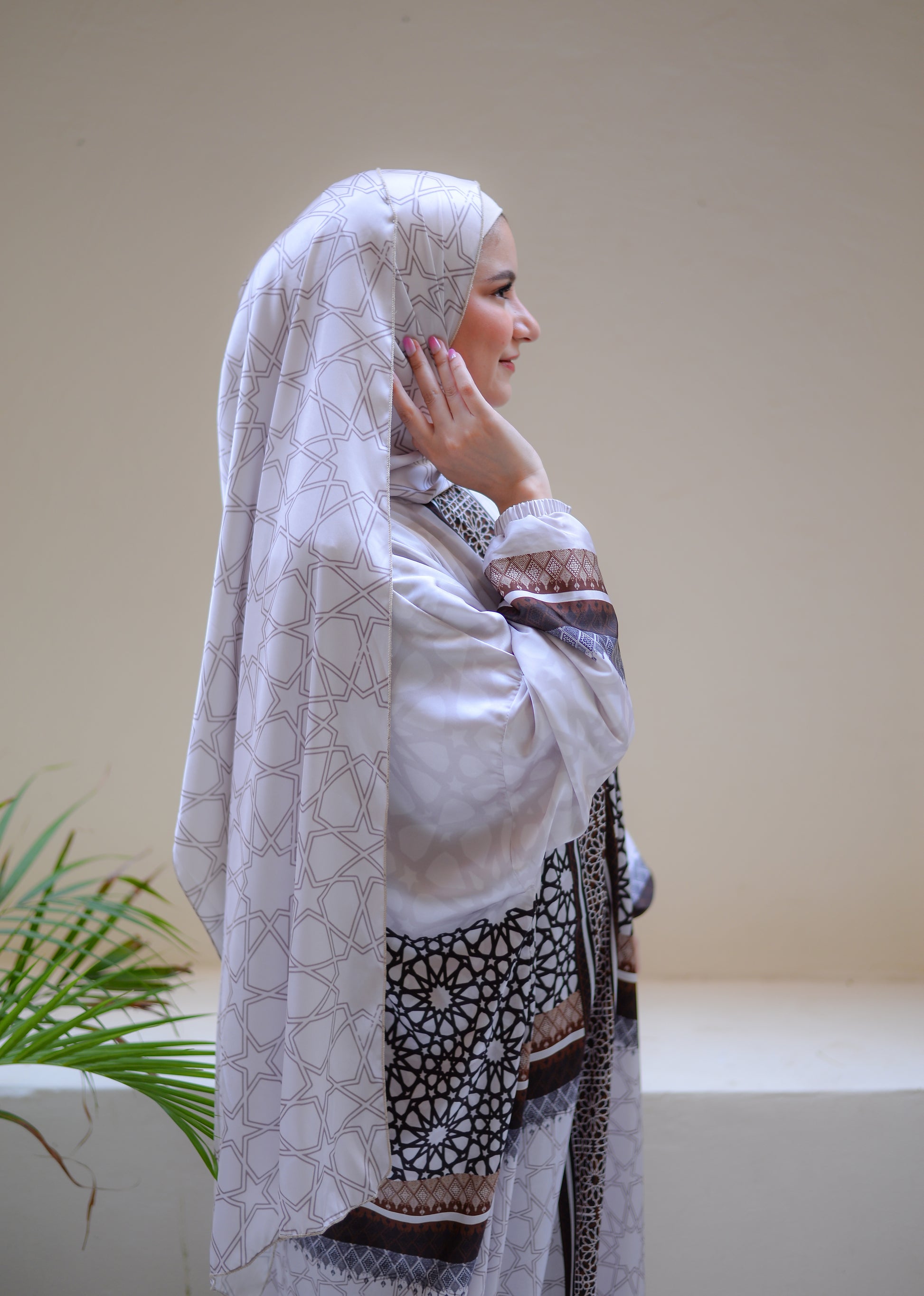 High quality imported satin material. The scarf is attached with the isdal. Sizes are one size and can be worn up to 110 kg.