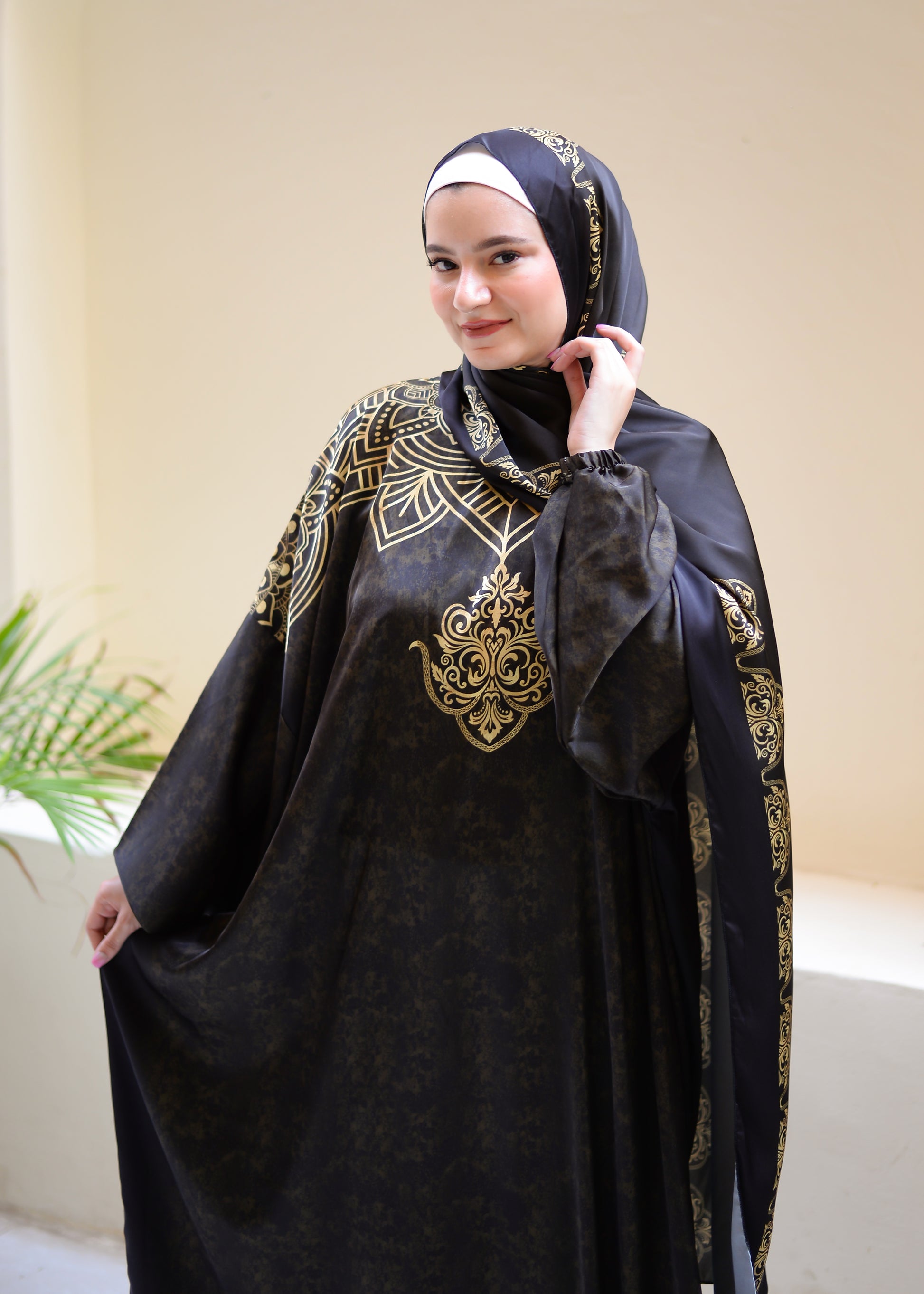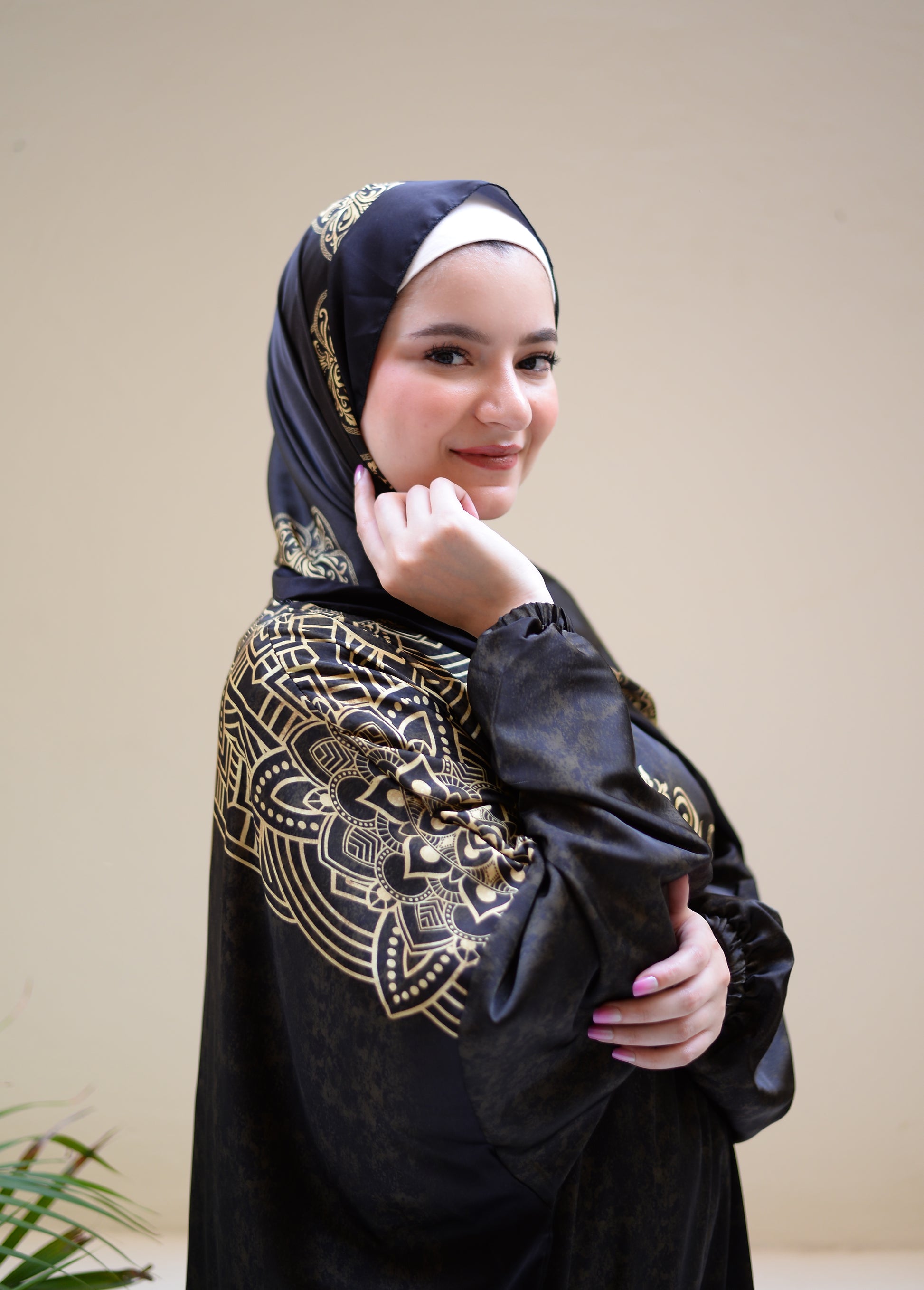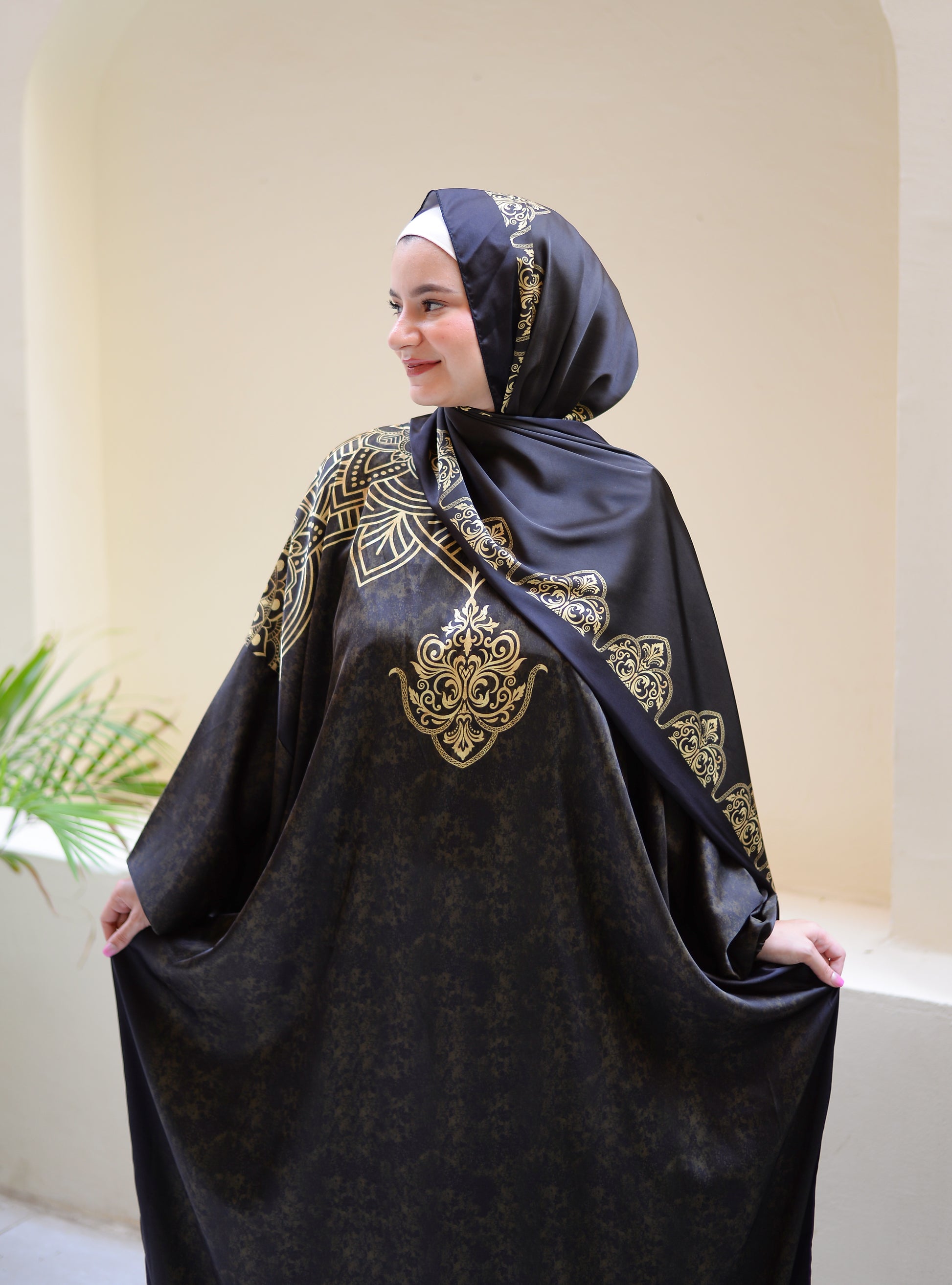 High quality imported satin material. The scarf is attached with the isdal. Sizes are one size and can be worn up to 110 kg.